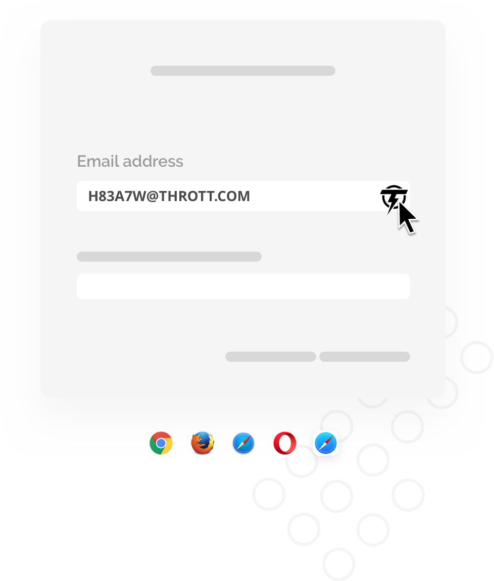 A button is added to all email form fields online. Instead of entering your real email address, just click the Throttle button, and a unique email address is generated and filled into the field for you.